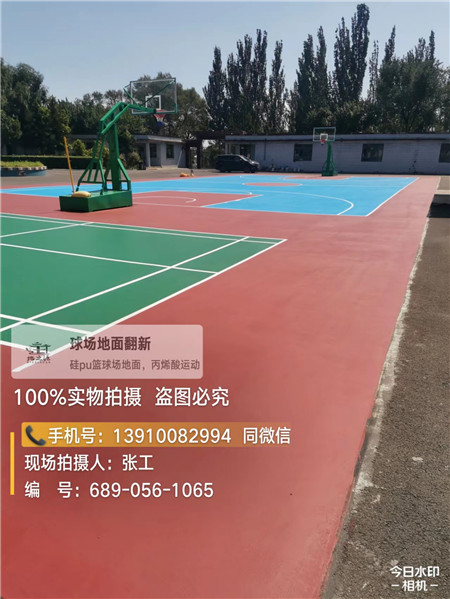 丙烯酸球场:涂刷 1 遍中涂 + 2 遍面涂,面涂分色施工(如场地边界、三分线),最后撒防滑颗粒并压实;